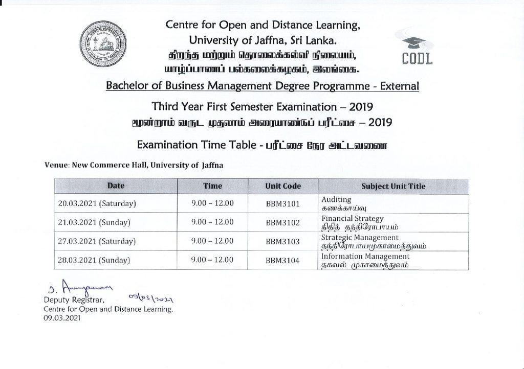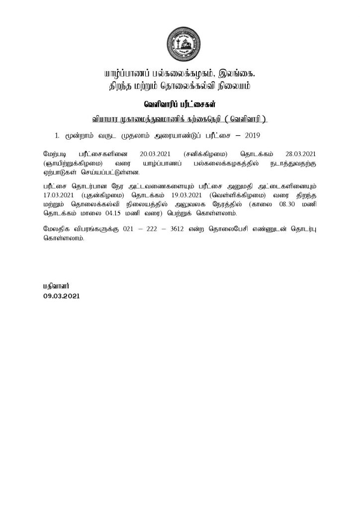 வியாபார முகாமைத்துவமாணி  பட்டப்படிப்பு (வெளிவாரி) – 2019/2020