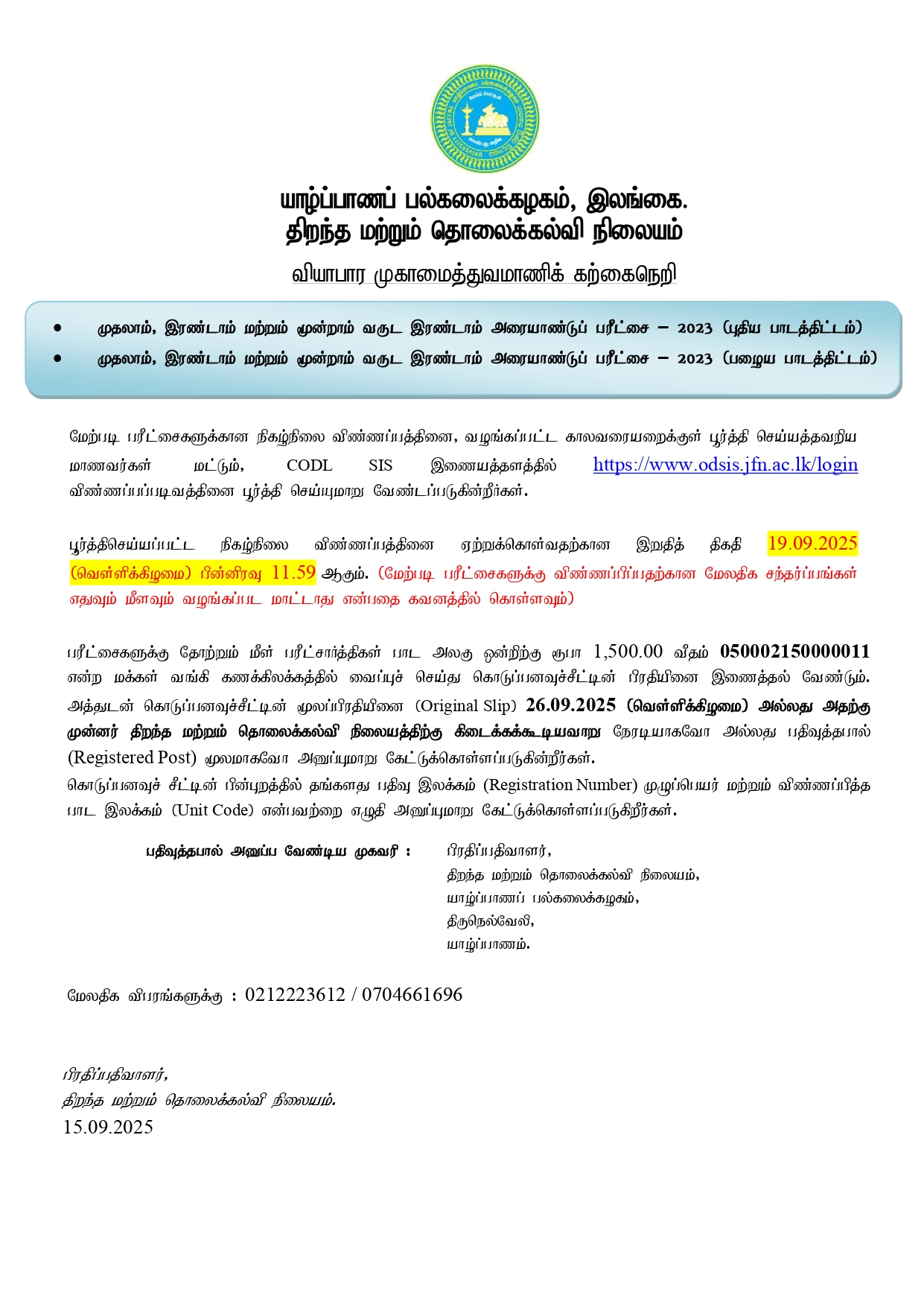 வியாபார முகாமைத்துவமாணிக் கற்கைநெறி – வெளிவாரிப் பரீட்சைகள்