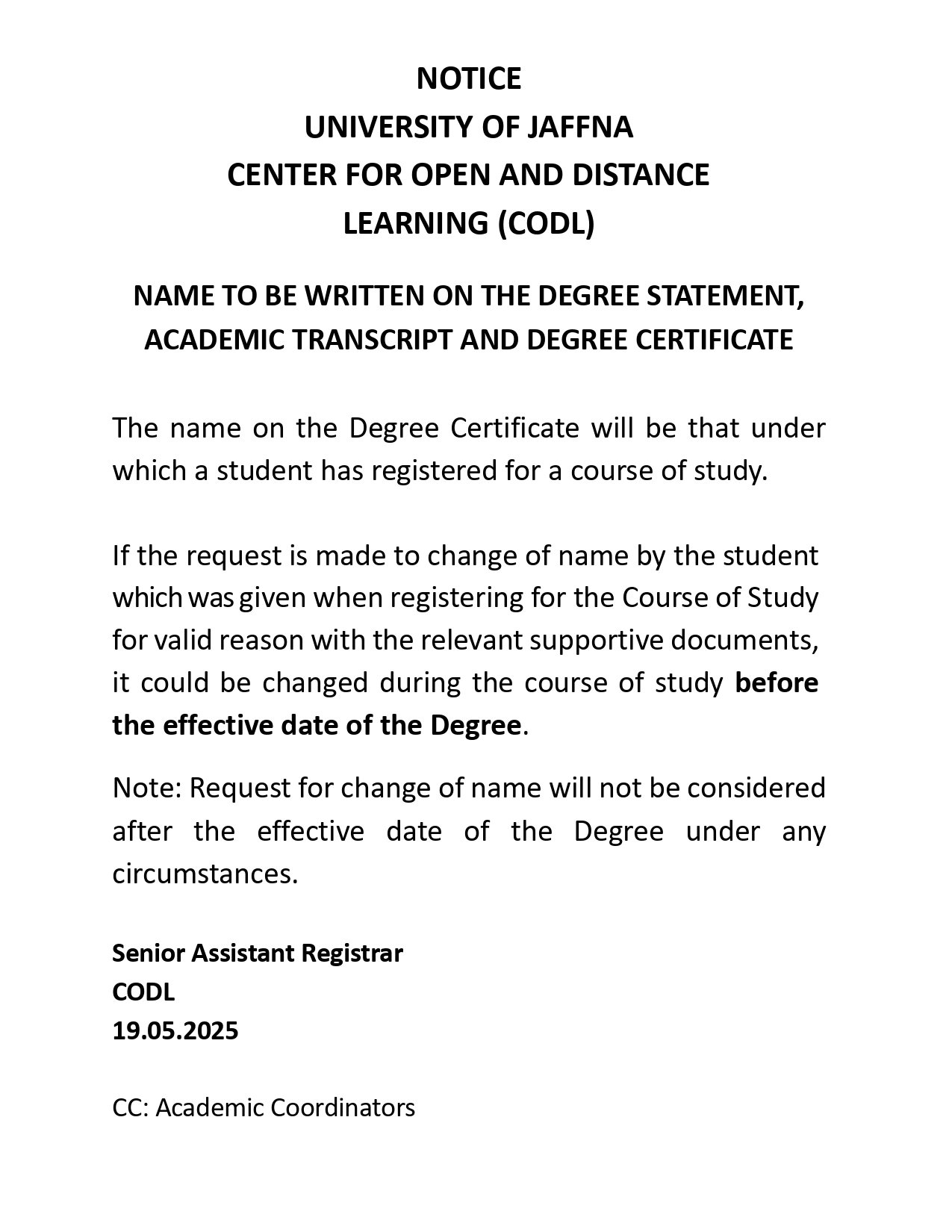 NAME TO BE WRITTEN ON THE DEGREE STATEMENT, ACADEMIC TRANSCRIPT AND DEGREE CERTIFICATE
