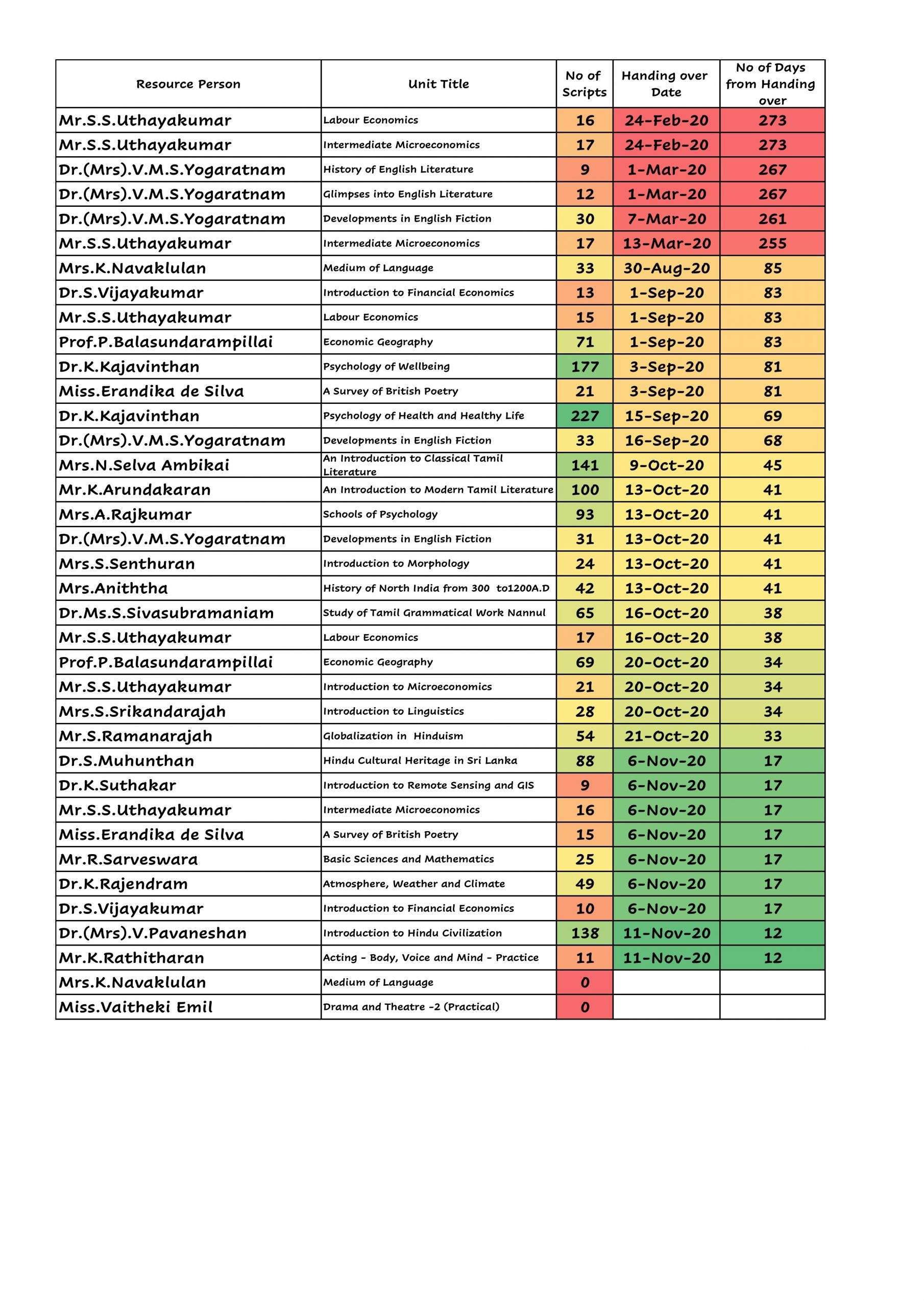 The following resource persons did not submit the in course assessment marks yet now.